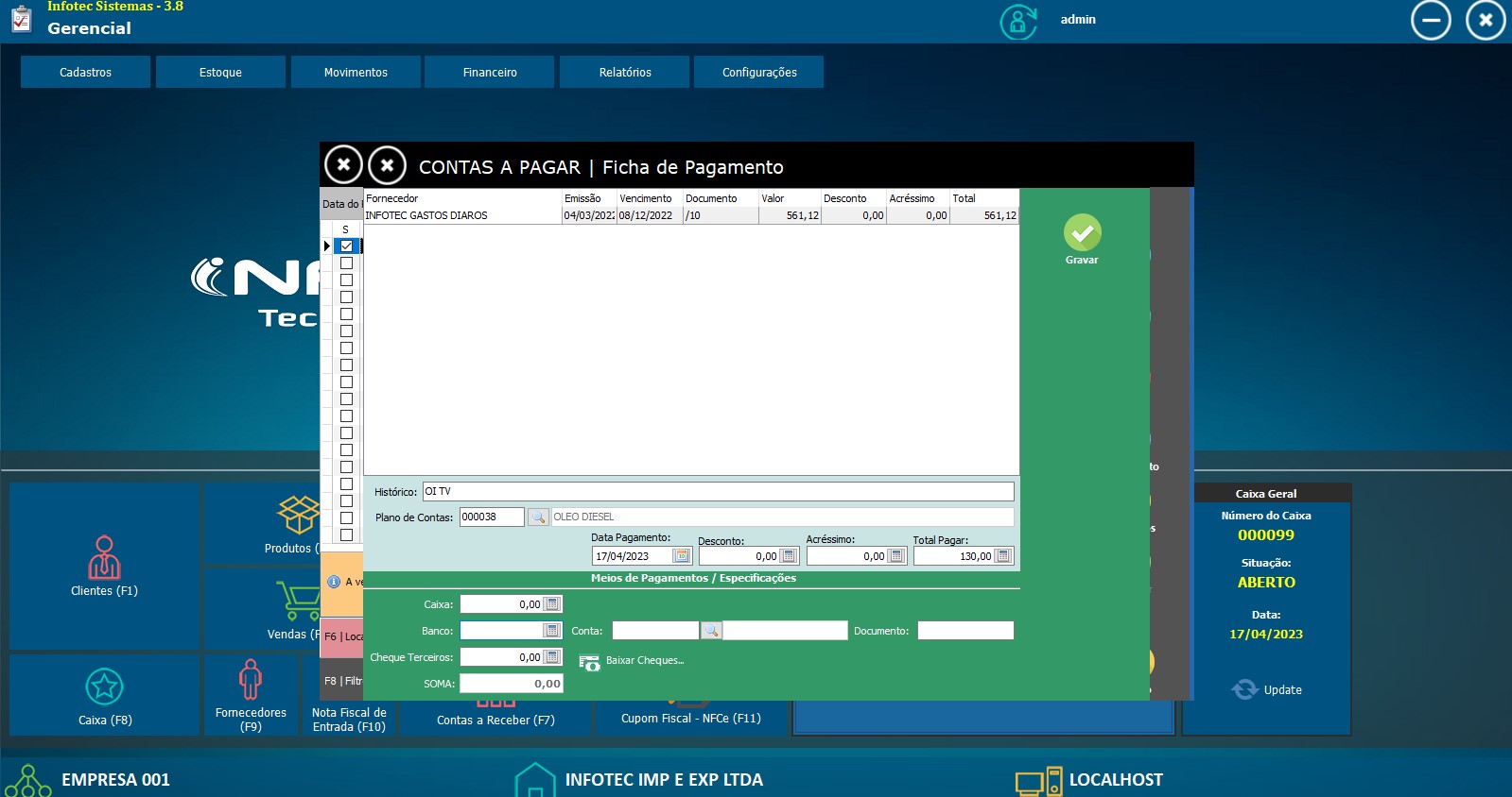Fluxo de caixa: o módulo permite o controle do fluxo de caixa da empresa, ajudando a prever os pagamentos futuros e a evitar atrasos nos pagamentos.
