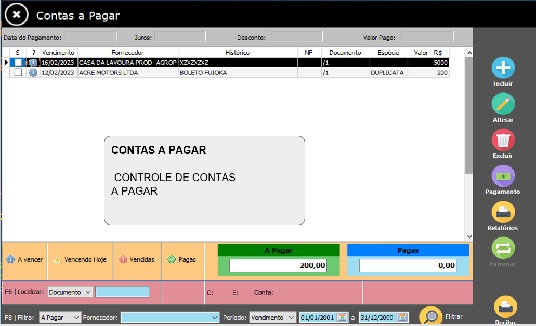 Controle de pagamentos: o módulo permite o controle de pagamentos a serem realizados, como datas de vencimento, valores, entre outras informações